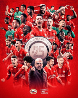 Eredivisien 32. kierroksella PSV voitti Sparta Rotterdamin 4-2, johti kakkosena olevaa Feyenoordia 12 pisteellä ensimmäisessä pelissä ja voitti tämän kauden Eredivisien mestaruuden kaksi kierrosta etuajassa. Voitti 25. Eredivisie-mestaruuden seuran historiassa! Voitti palkinnon uudelleen 5 kauden jälkeen.