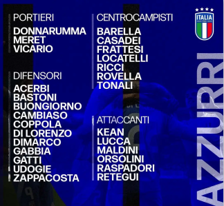 Italian maajoukkue julkisti hiljattain kesäkuun MM-karsintaotteluiden kokoonpanon. Maalivahti: Donnarumma, Italia pelipaitoja päässään, on edelleen avauskokoonpanossa. Meret ja Vicario ovat myös listalla. Puolustajat: Acerbi, Bastoni, Buongiorno, Cambiasso, Kubora, Di Lorenzo, Dimarco, Gabbia, Gatti, Udogi, Zappacosta. Keskikenttäpelaajat: Barella, Cassadi, Fratesi, Locatelli, Samuele Ricci, Rovira, Tonali. Hyökkääjät: Keane, Luca, Daniele Maldini, Orsolini, Raspadori, Retegui. jalkapallo pelipaidat käyttänyt Retegui voitti Serie A:n Kultaisen kengän tällä kaudella 25 maalilla. Toivon, että hän jatkaa hyvää suoritusta maajoukkueessa.